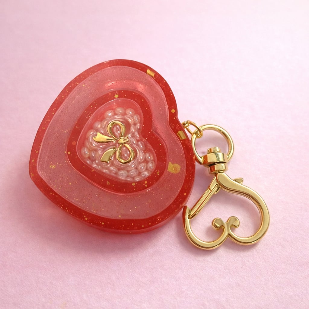 ハート型 レジンキーホルダー(レッド×ゴールド)|バッグ・鍵用チャーム