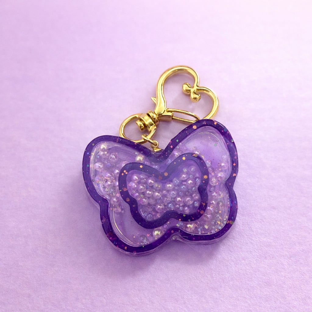 蝶々型 レジンキーホルダー(クリア×ゴールド)|バッグ・鍵用チャーム
