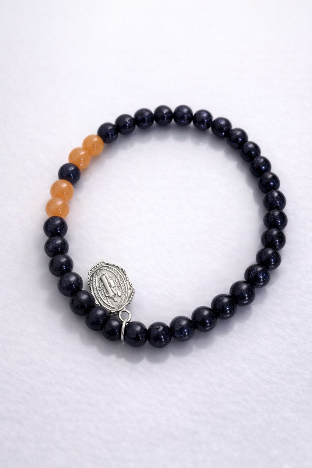 ビーズブレスレット(ネイビー×オレンジ)|チャーム付き