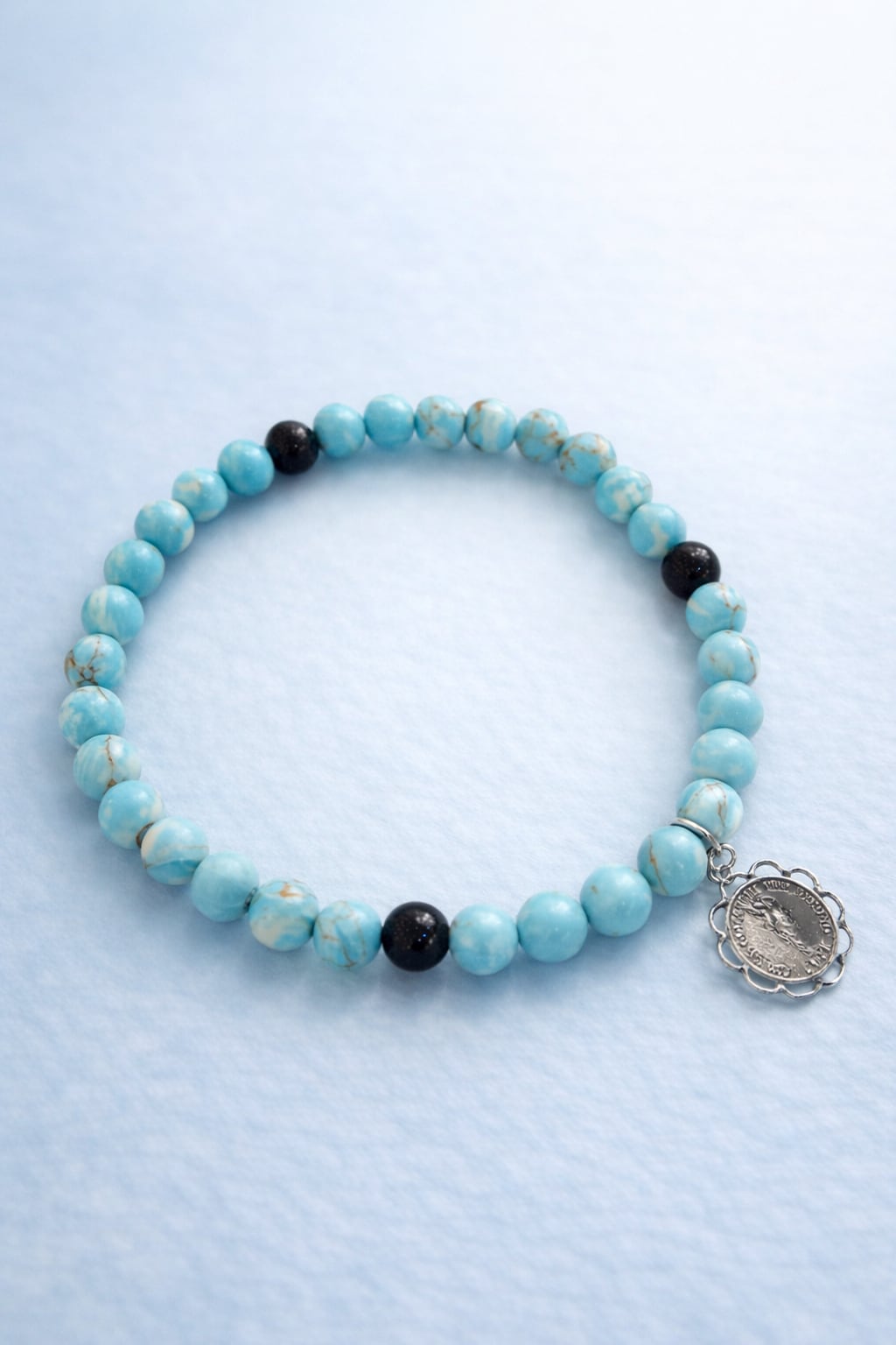 ビーズブレスレット(ターコイズ×ブラック)|シルバーチャーム付き